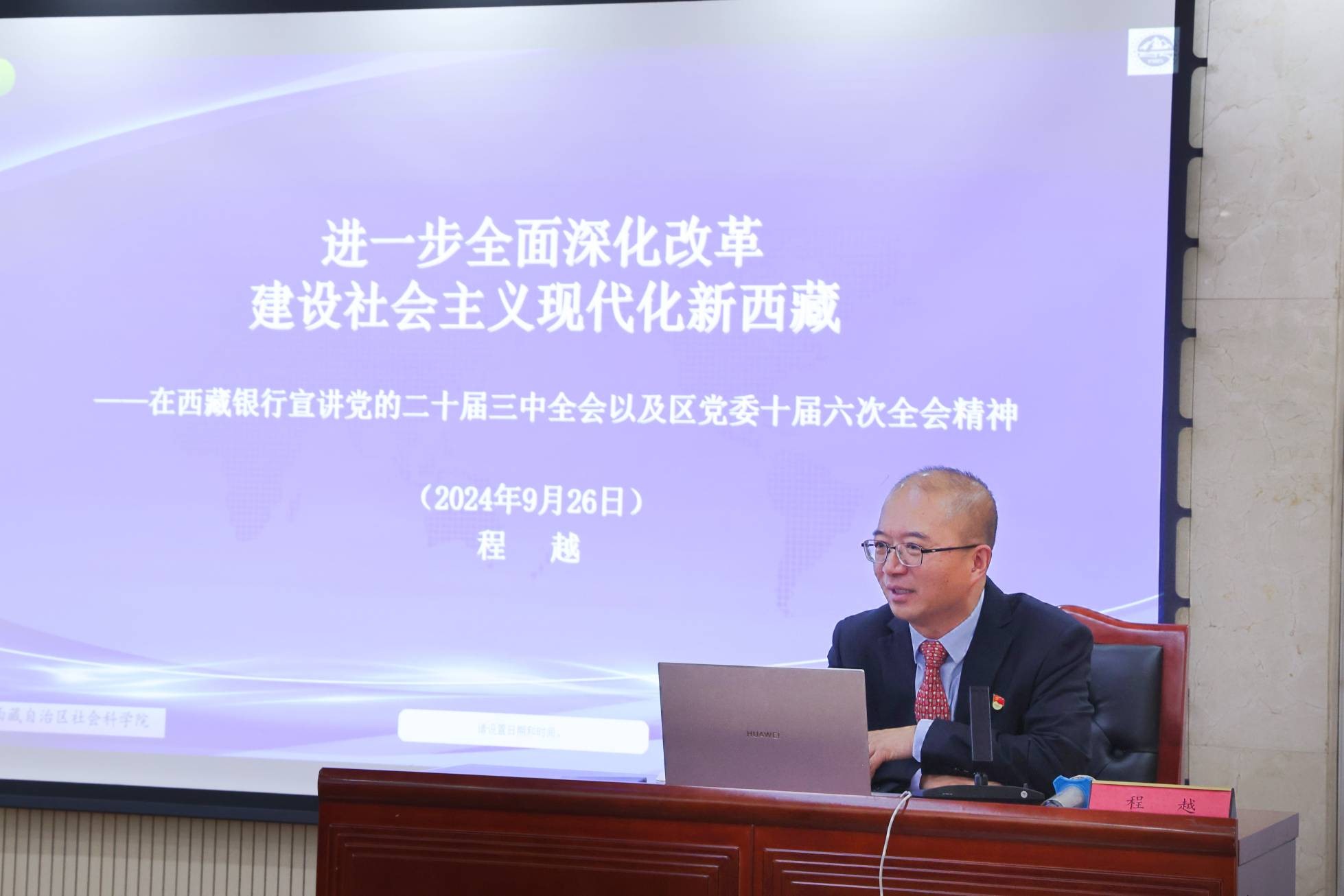 程越同志以“进一步全面深化改革、建设社会主义现代化新西藏”为题,从“二十届三中全会的时代意义与历史意义、深入学习领会习近平总书记在党的二十届三中全会上的重要讲话精神、全面准确理解《决定》提出的进一步全面深化改革重大举措、全面掌握区党委十届六次全会的主要精神、全力以赴抓好二十届三中全会以及区党委十届六次全会精神贯彻落实”五个方面,宣讲了党的二十届三中全会和自治区党委十届六次全会精神,为中欧(中国)一站式服务官网进一步全面、系统、准确把握党的二十届三中全会和自治区党委十届六次全会精神提供了十分有益的帮助。